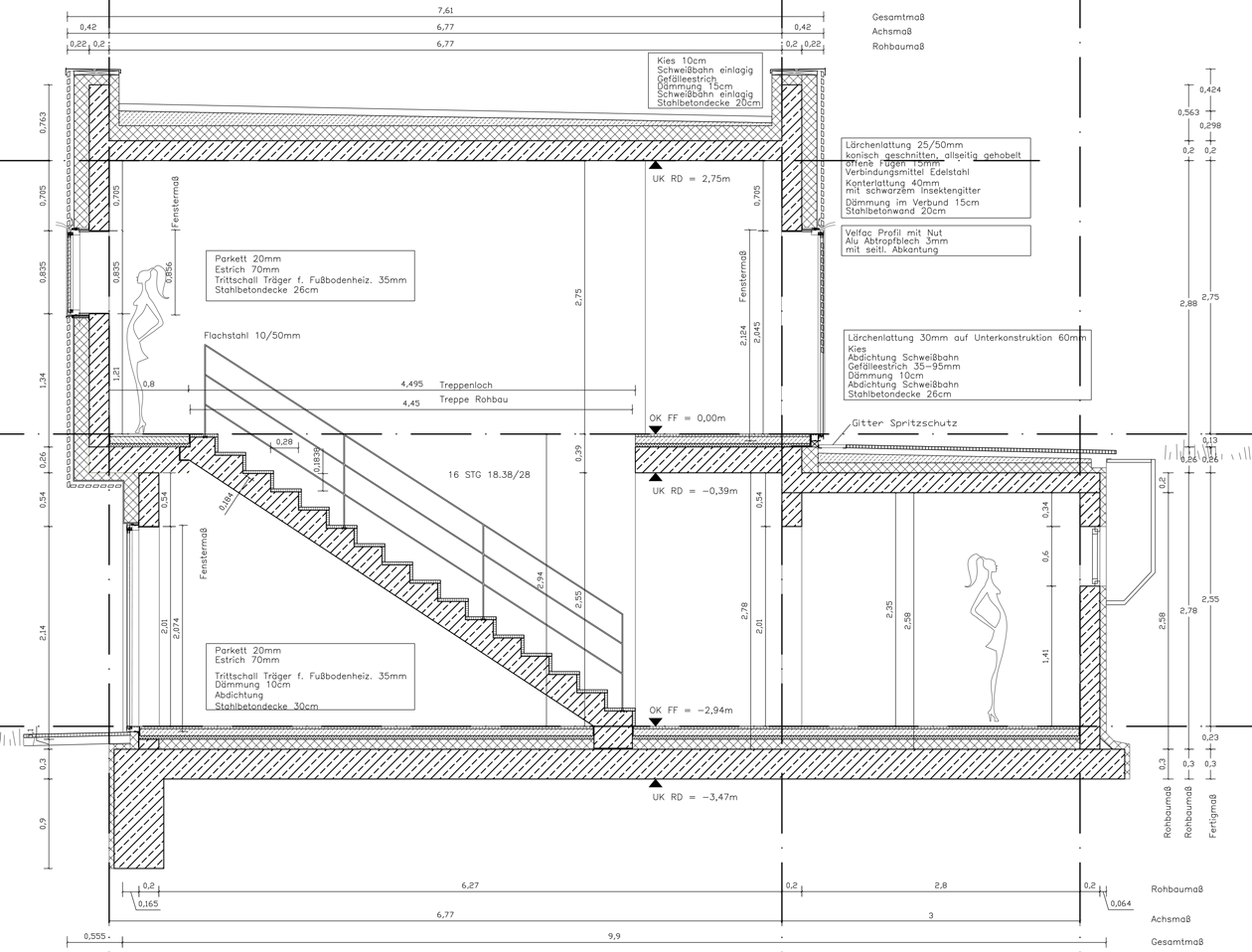 Neubau eines Einfamilienhauses im dörflichen Kontext und Hanglage.