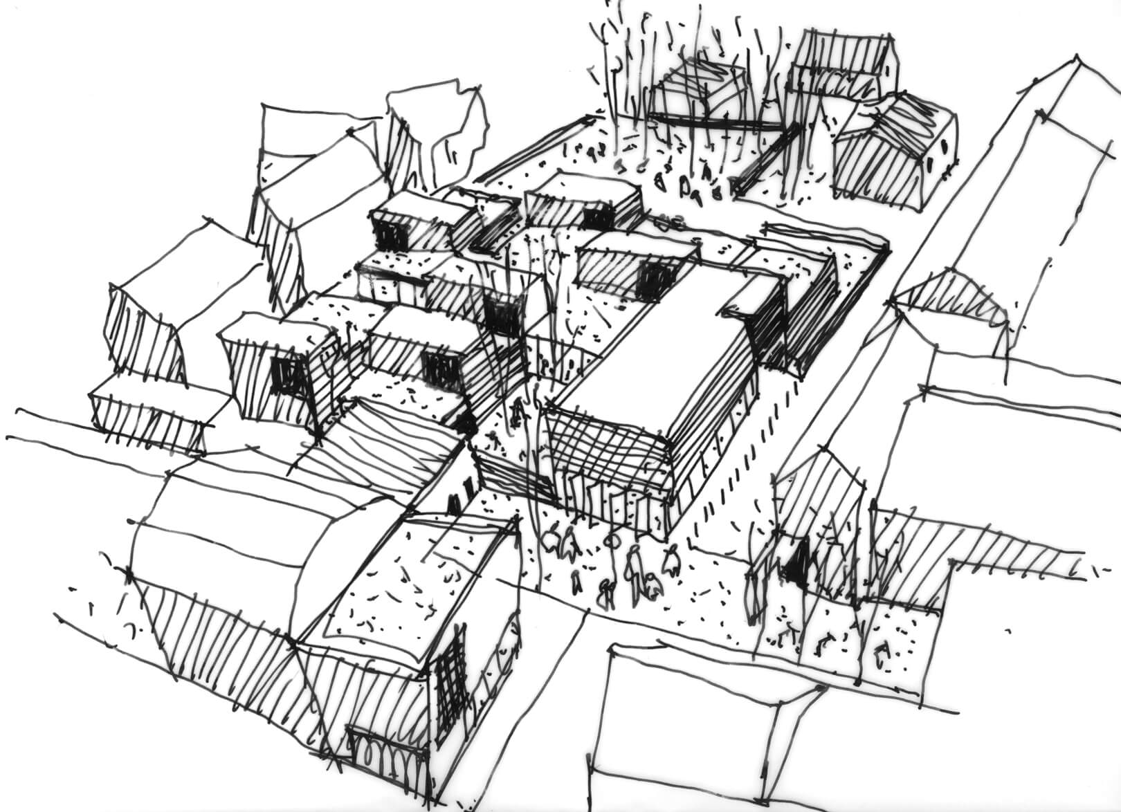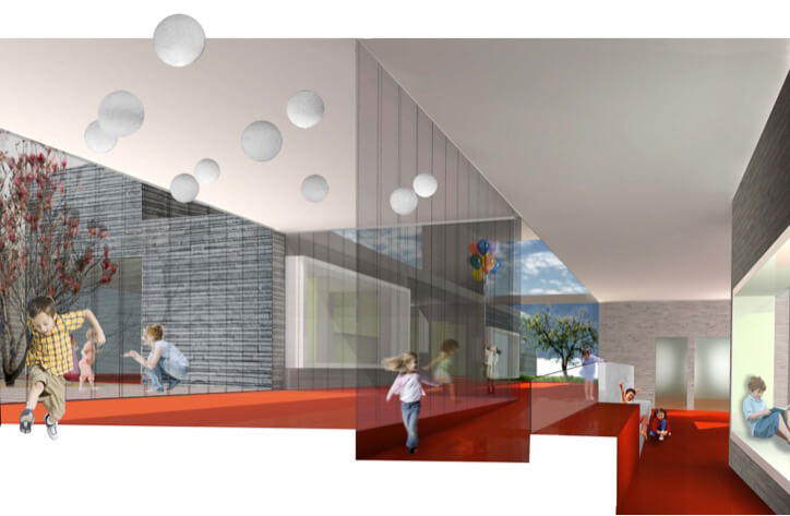 Das Gebäude vermittelt den Kindern beim Aufenthalt im Inneren, durch die Innenhöfe und Ausblicke in der Umgebung, den Eindruck, im Freien zu sein. Die bauliche Struktur löst sich in einzelne Häuser auf, Häuser mit Wohnzimmer, Esszimmer, Schlafzimmer und Dach.